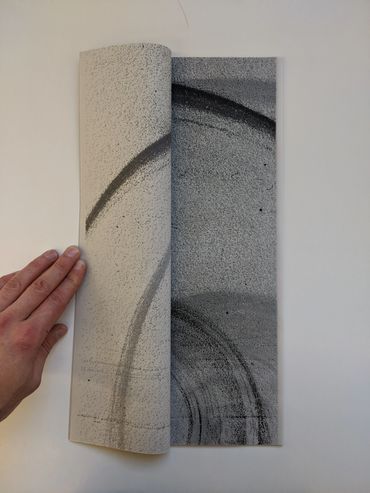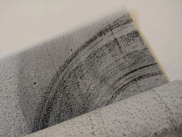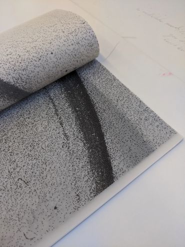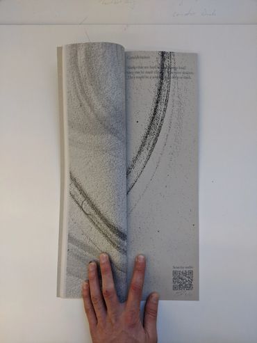 The first edition is a book made in response to the sculpture 'Acoustic Mirror One'. The marks are made by the mechanical aspect of the work which is how the sound is made in the piece: The wires dragging across the metal in a circular motion along side the ambient sounds of the room.