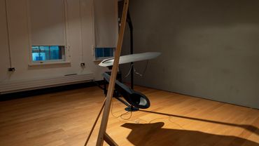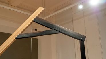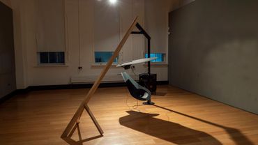 Klingen; klang II is an exploration of emergent material relationships in which sound is used as a way of experiencing and also becoming a part of the ongoing interplay of agencies within the piece. Contact microphones amplify the mild steel suspended from a Green Oak frame to generate/reveal resonant feedback loops as the material relationships within the sculpture emerge visually and sonically.
