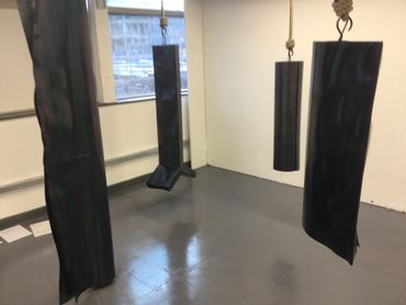 The sculptures resonate with the ambience of the space and I introduced a mechanical aspect of making sound to add to the soundscape of the installation as each sculpture maintains a sonic dialect between themselves.